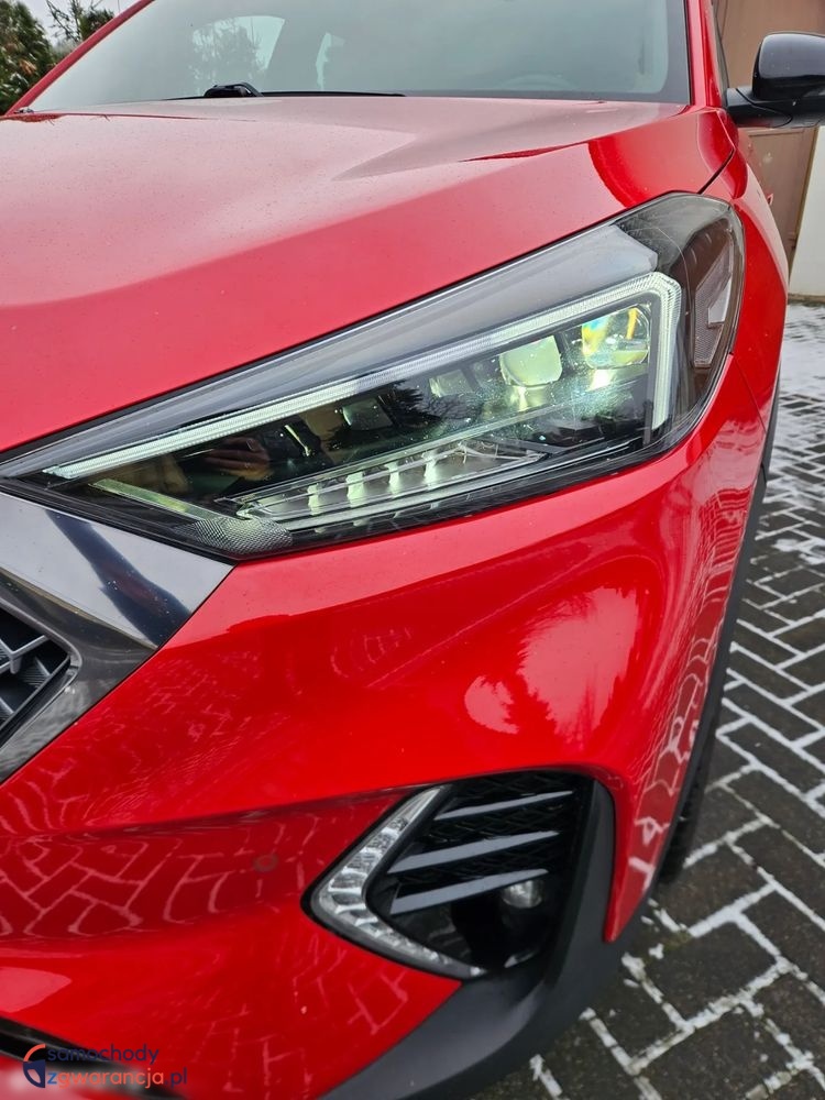 Na sprzedaż oferuję przepięknego Hyundaia Tucsona w sportowej wersji N Line Shine DPC z 2020 roku, z ekonomicznym i dynamicznym silnikiem 1.6 CRDi. Auto świeżo sprowadzone, w oryginalnym lakierze, w wyjątkowym czerwonym kolorze z czarnymi akcentami, który prezentuje się bardzo nowocześnie i wyróżnia się na drodze.