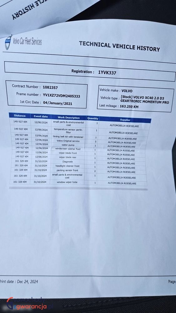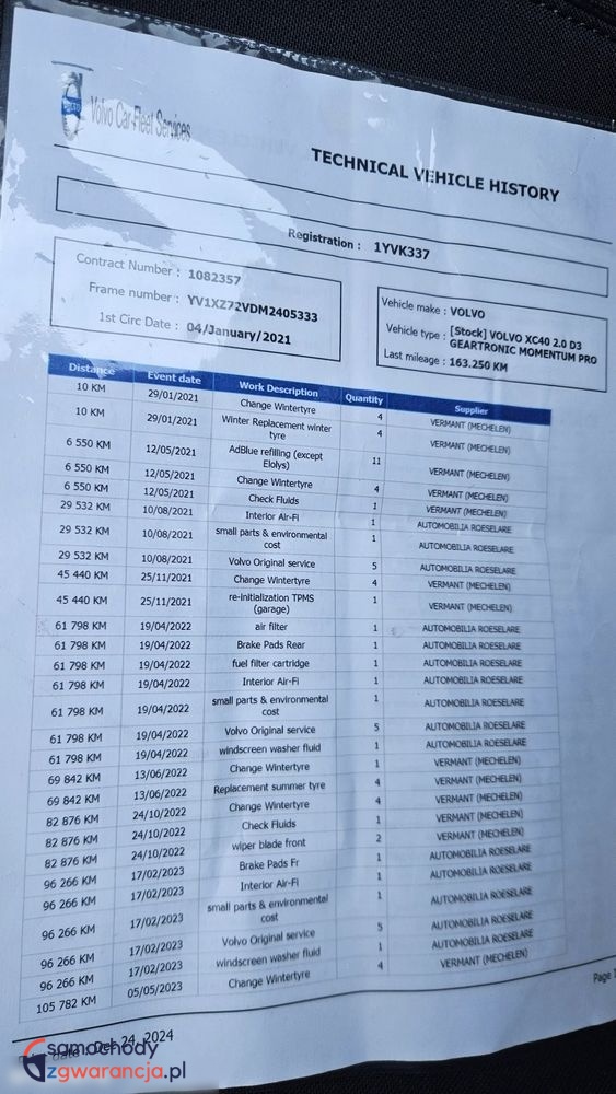 VIN: YV1XZZ72VDM240533