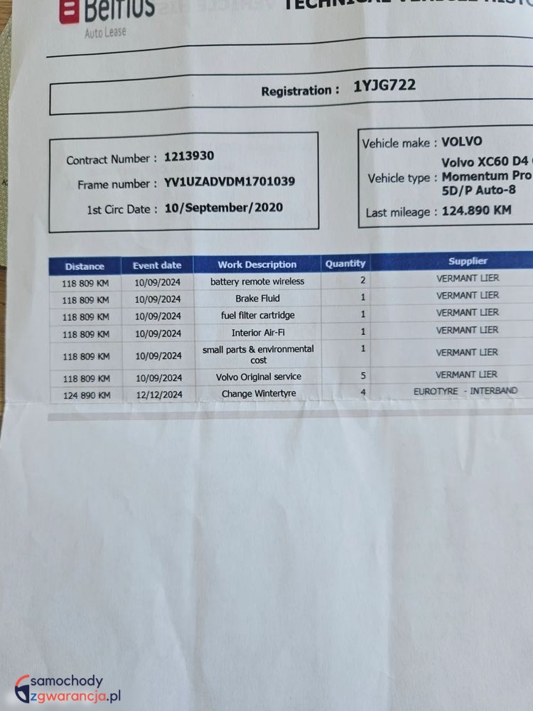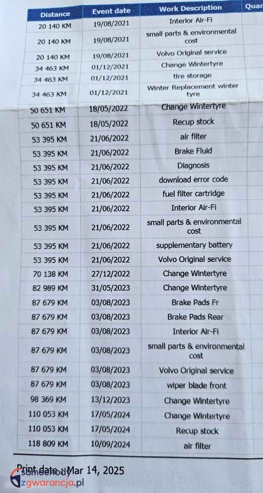 PEŁNA HISTORIA SERWISOWA WYDRUK OD A DO Z